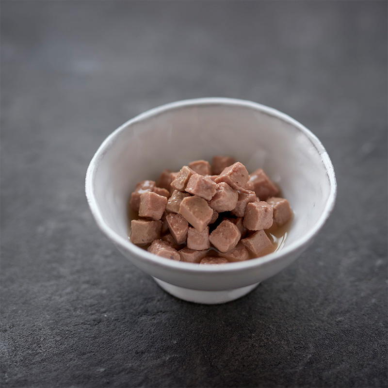 | 素材 | チキンブロス、チキン、チキンレバー、卵、粉砕乾燥エンドウ豆、ナチュラルフレーバー、リン酸ナトリウム、グアーガム、塩、炭酸ナトリウム、DL- メチオニン |