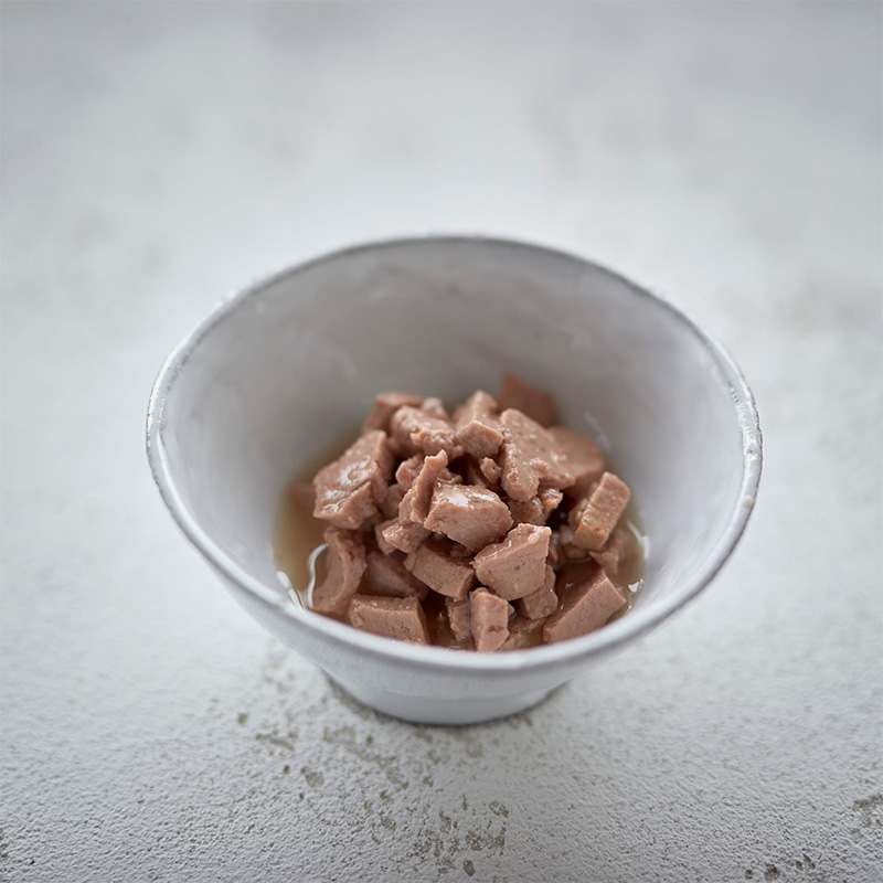 | 素材 | チキンブロス、チキン、チキンレバー、卵、粉砕乾燥エンドウ豆、ナチュラルフレーバー、リン酸ナトリウム、グアーガム、塩、炭酸ナトリウム、DL- メチオニン |